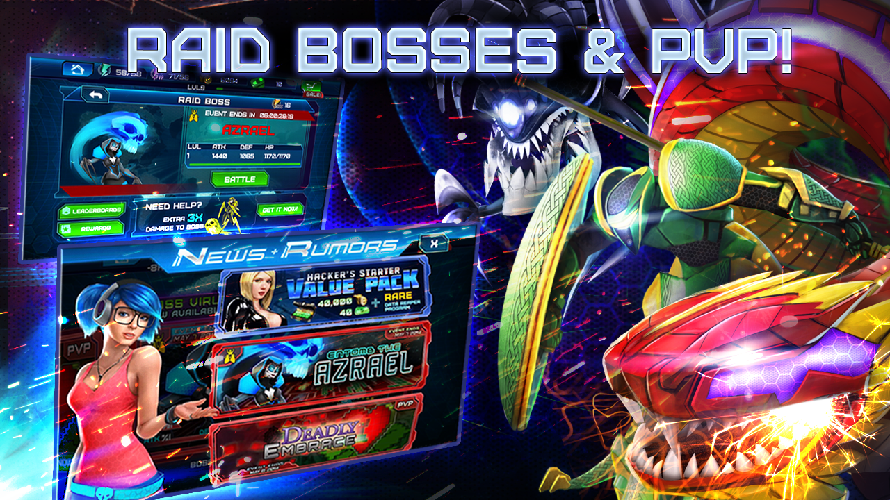 Derrotar os vírus e trojans ataques de outros hackers. Colete programas exóticos e ganhar poder. Atualize e evoluir sua coleção de programas e batalha contra outros hackers.
