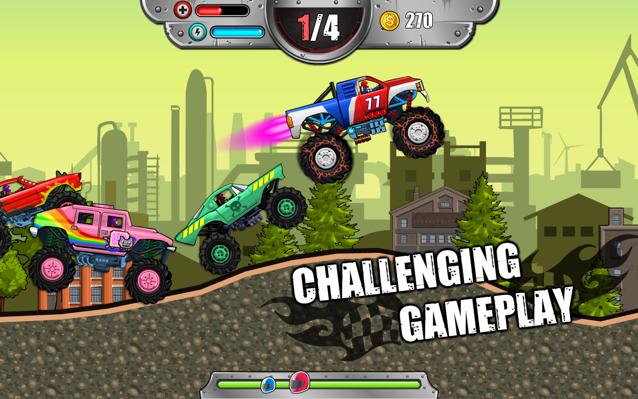 Você está pronto para alguma destruição final, escolher o caminhão de monstro que você ama e corrida contra adversários diferentes, em cinco tipos de corrida. Quebra, acidente e traço seu caminho para a vitória nos níveis demolidor, chocar com tantos carros quanto possível e obter a maior recompensa.
