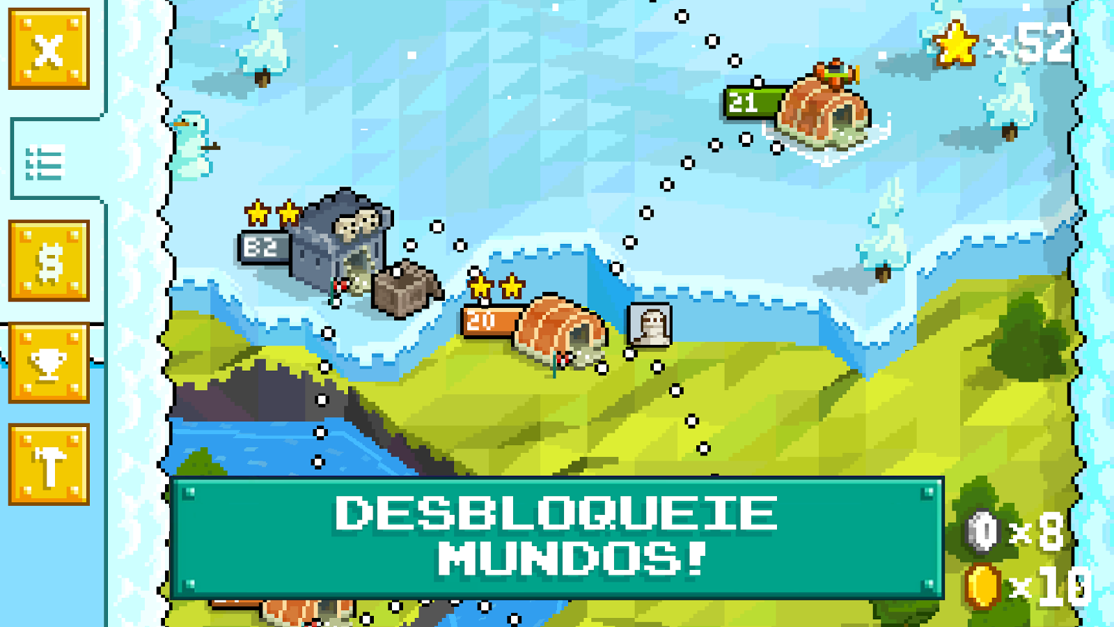 Estás a fazer loopings no cockpit de um avião de 8 bits. Pode pedir reparações, mas isso é para tolos! Pega na manche, voe pelos ares. Para ultrapassar, vai precisar de pura perícia e de sangue frio. Entre na zona de perigo!