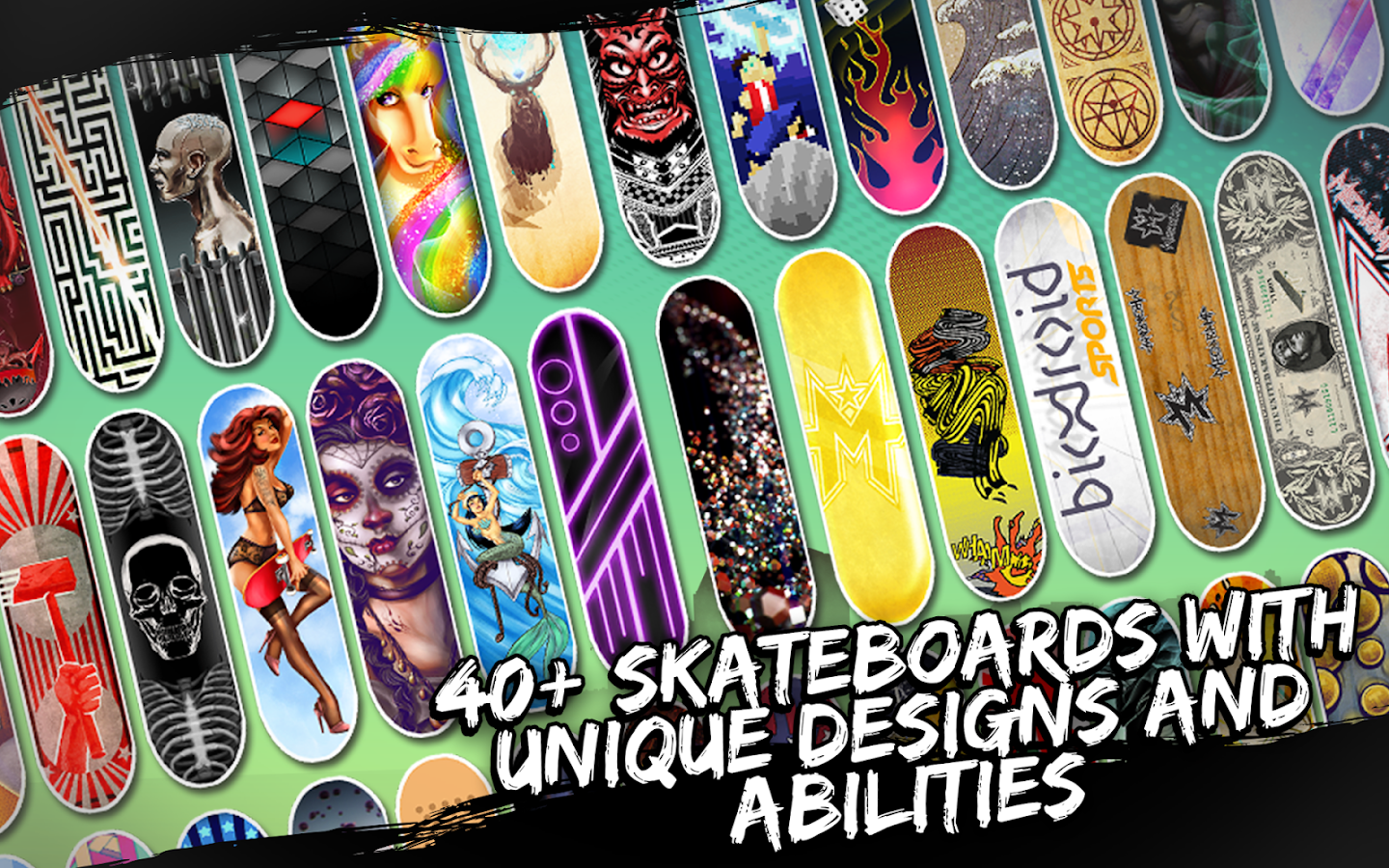 Progrida você skatista, desbloqueie novos, adquira plataformas loucas, e aprenda novos truques para colocar ainda mais o smack para baixo em sua competição.