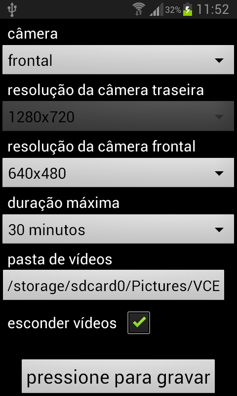 - Você pode iniciar e parar a gravação de um ícone "pasta" que é criado após iniciar a gravação.